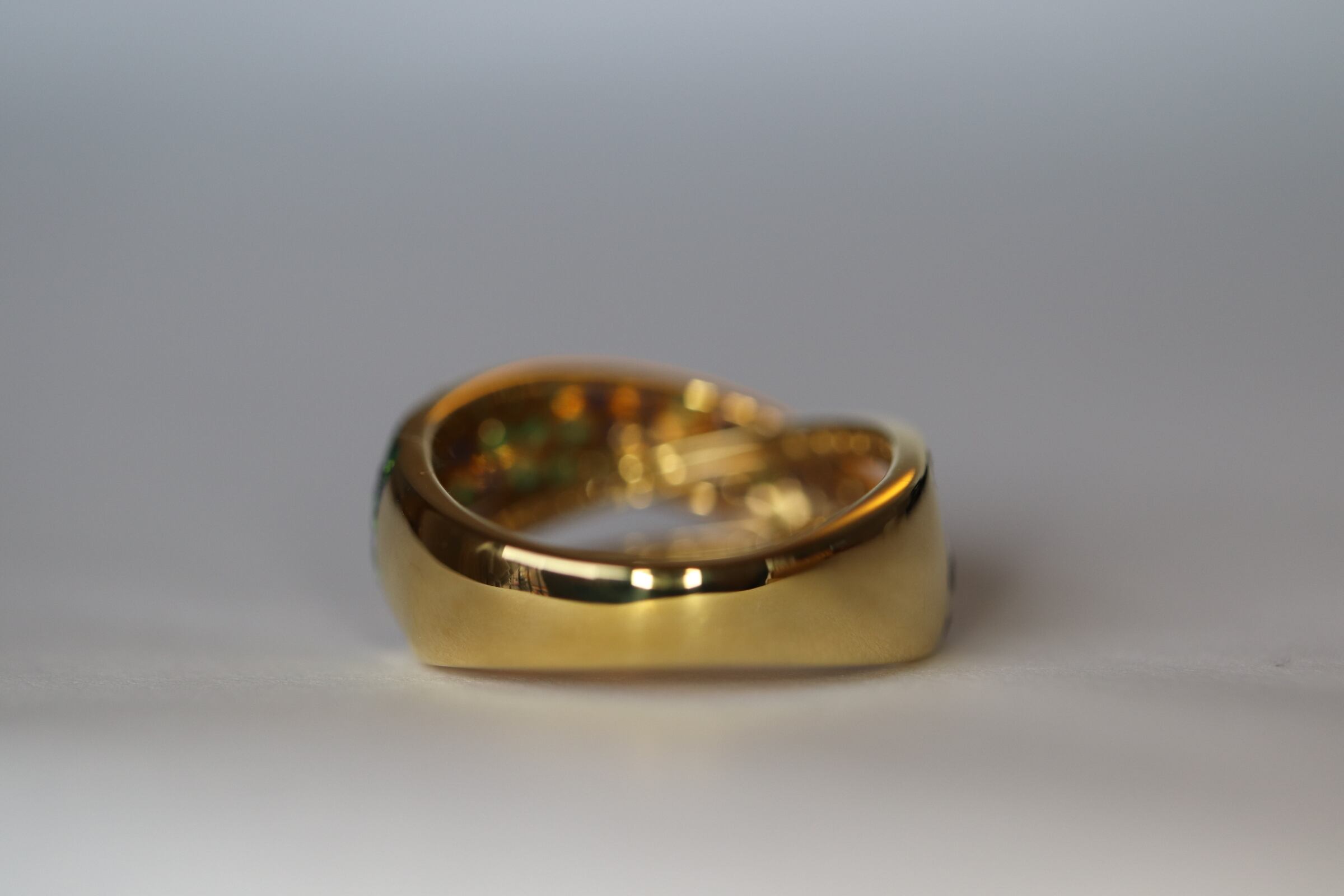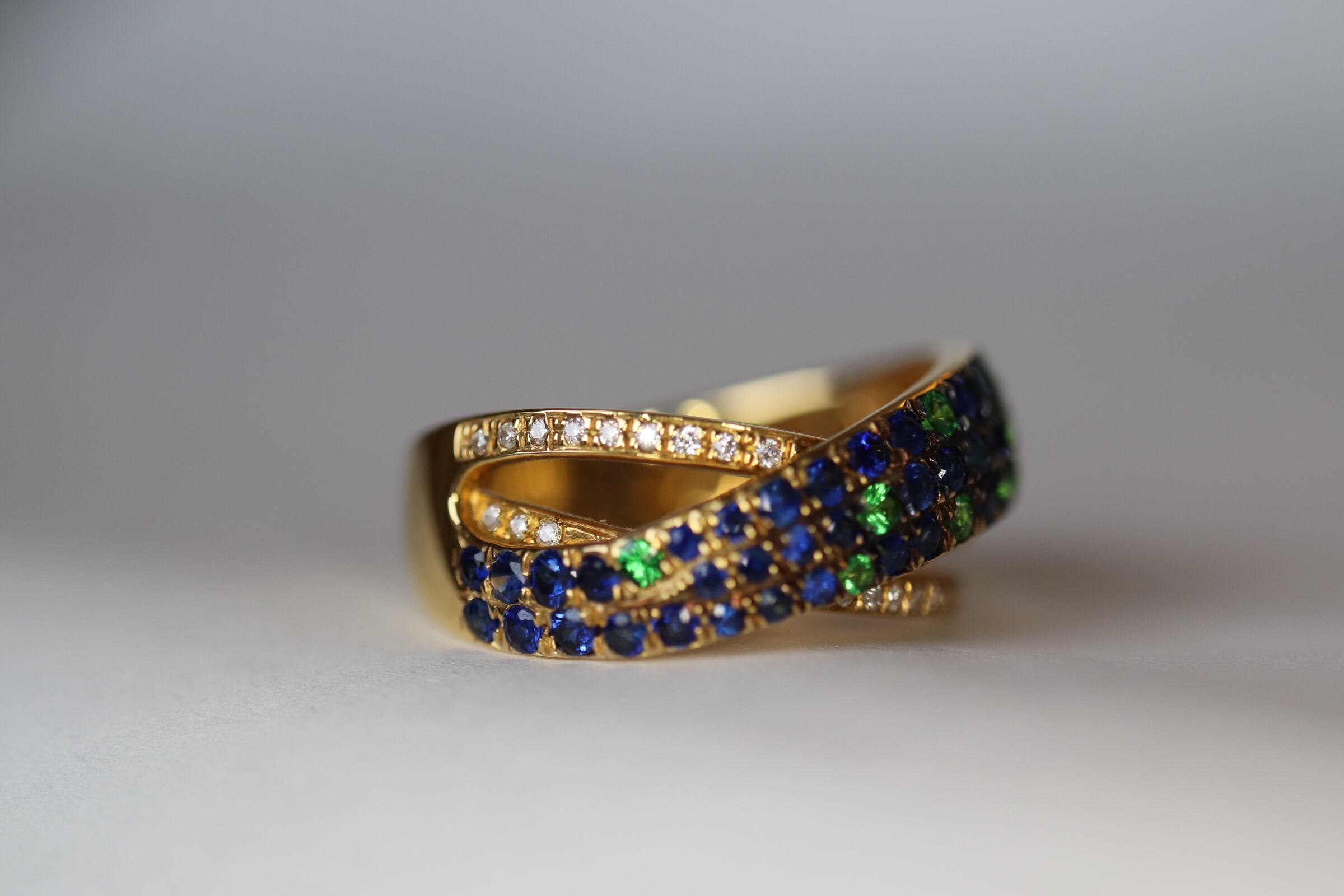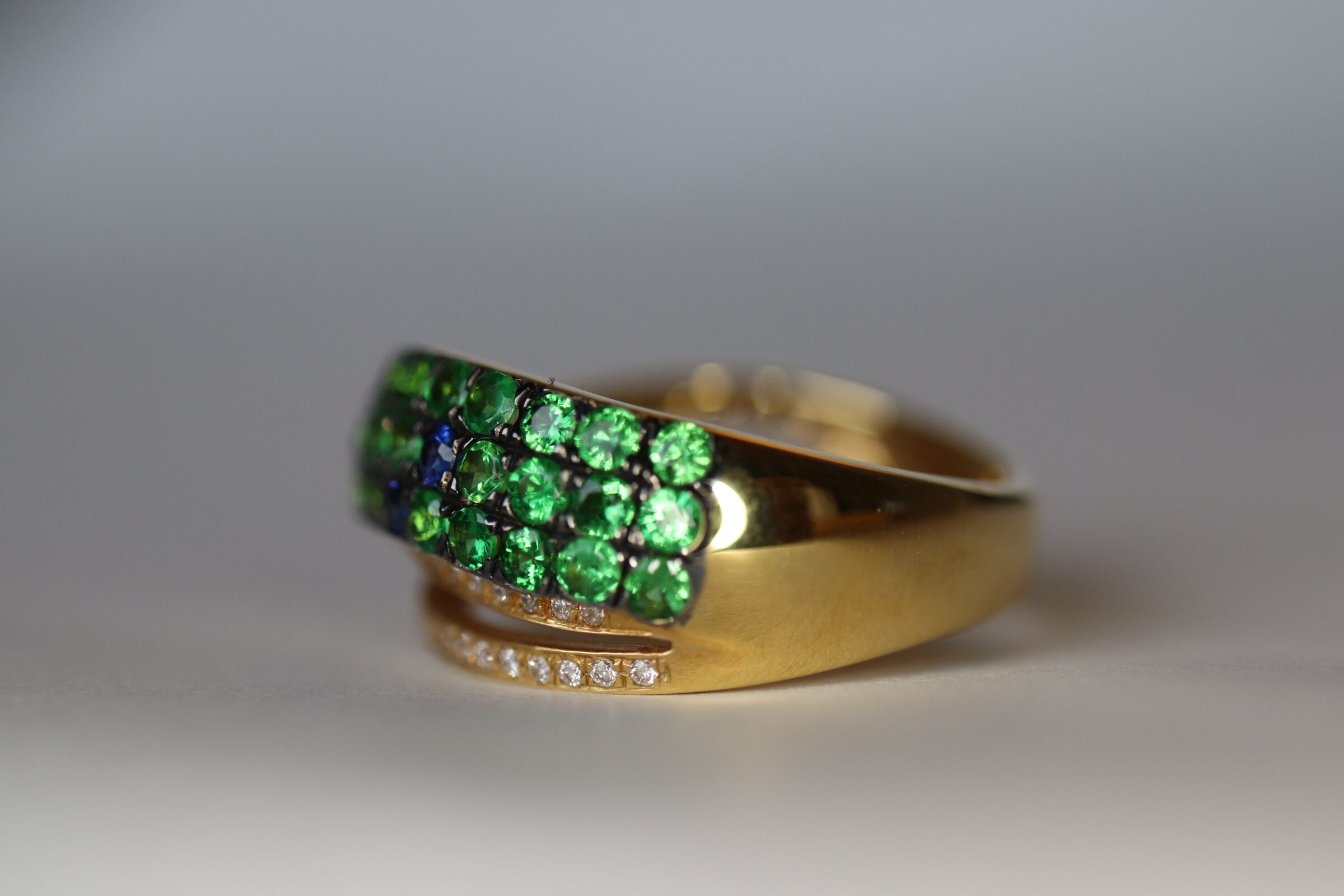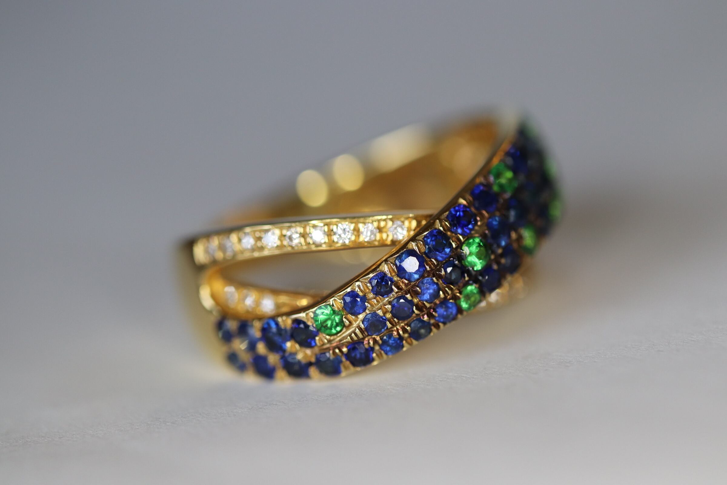 K18グリーンガーネット、サファイアのリング
