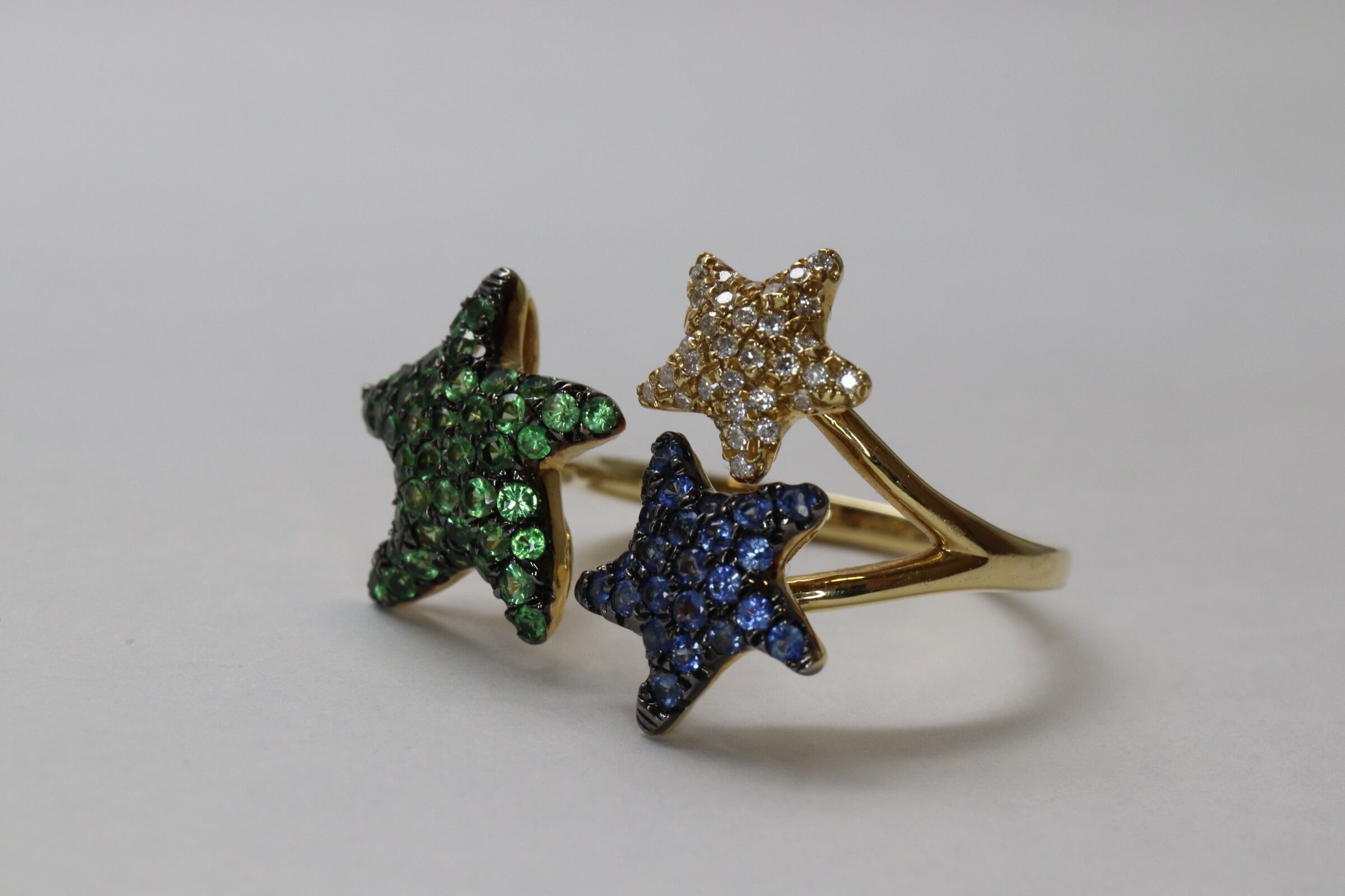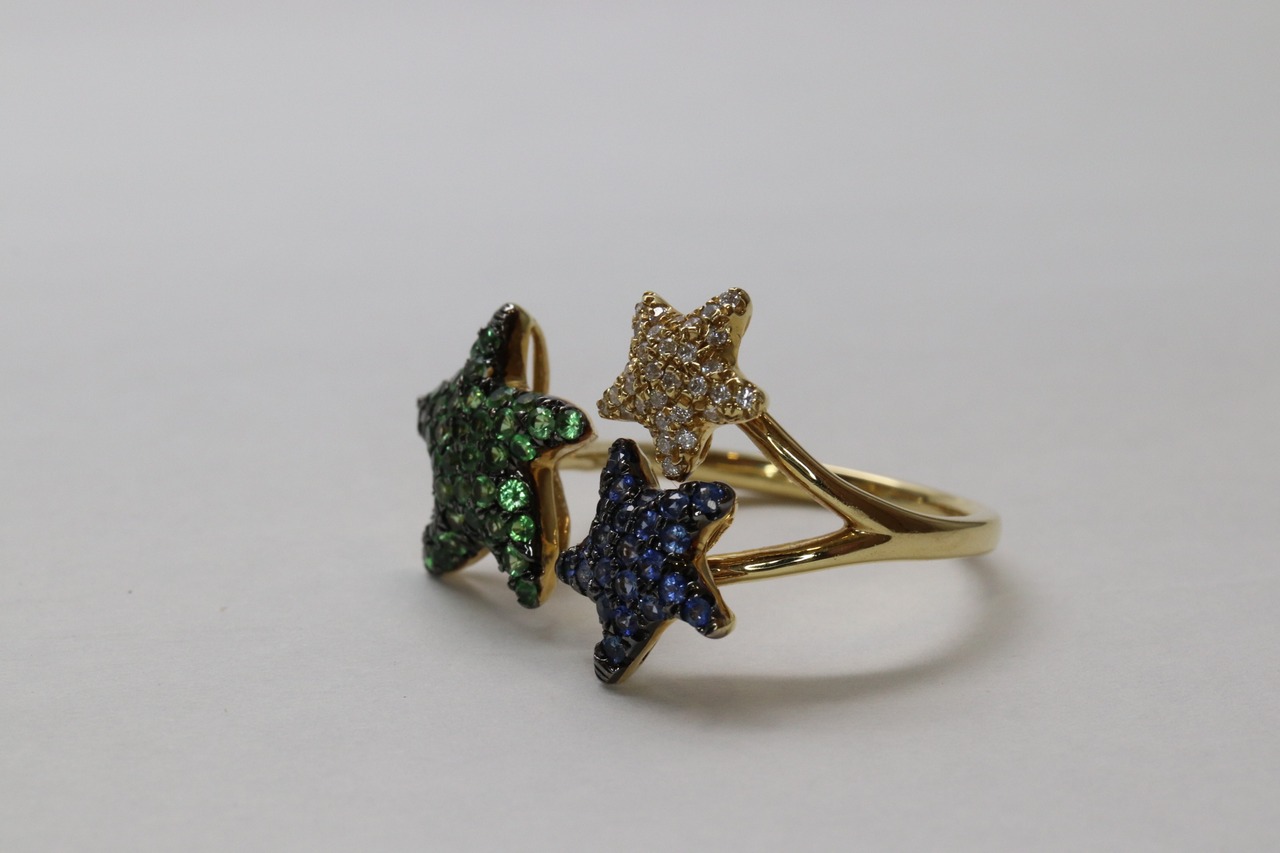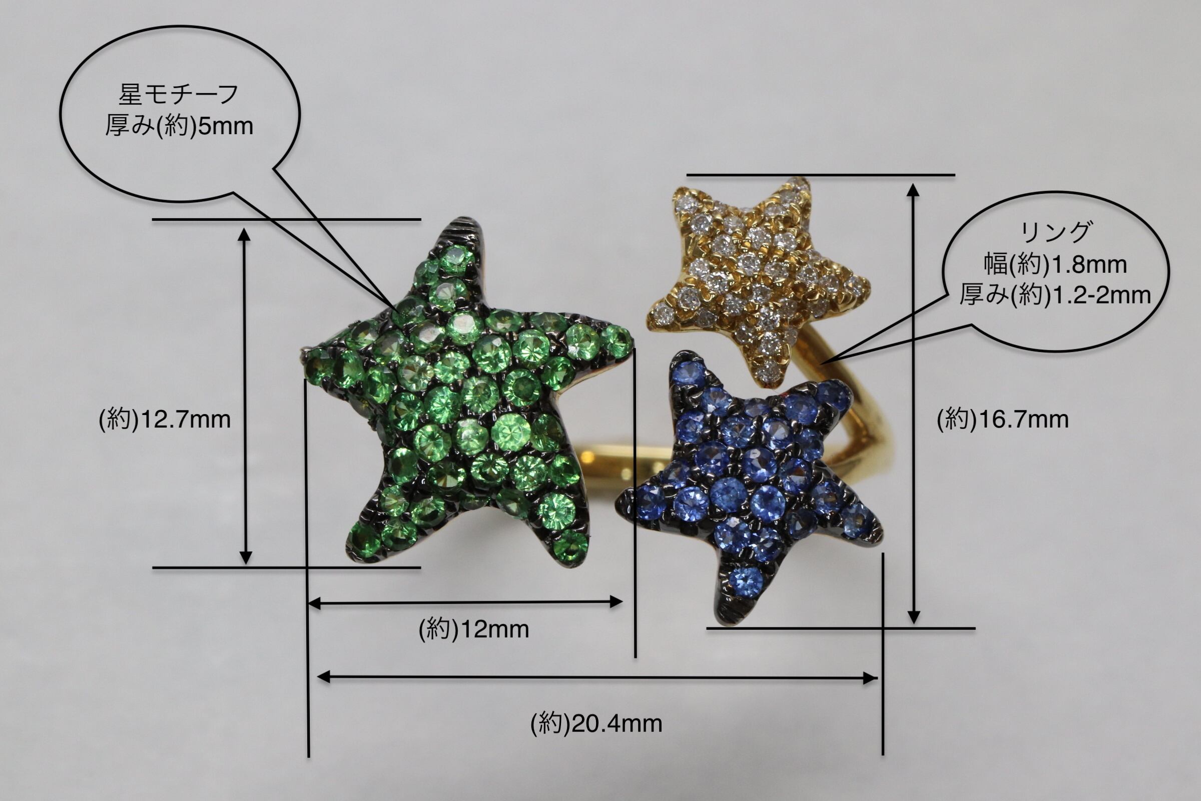 こちらのリングは、星モチーフの間に隙間が開いているため、普通のリングよりサイズがやや大きめに感じるかもしれません。