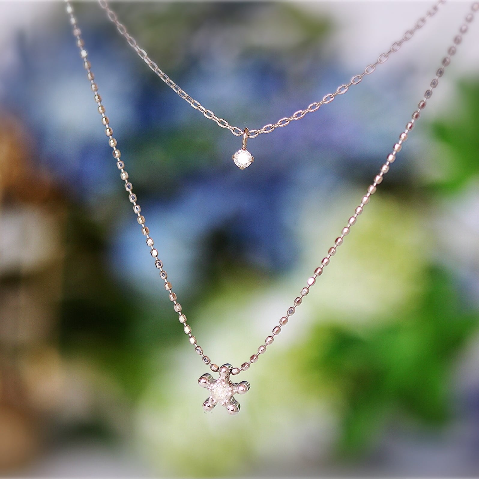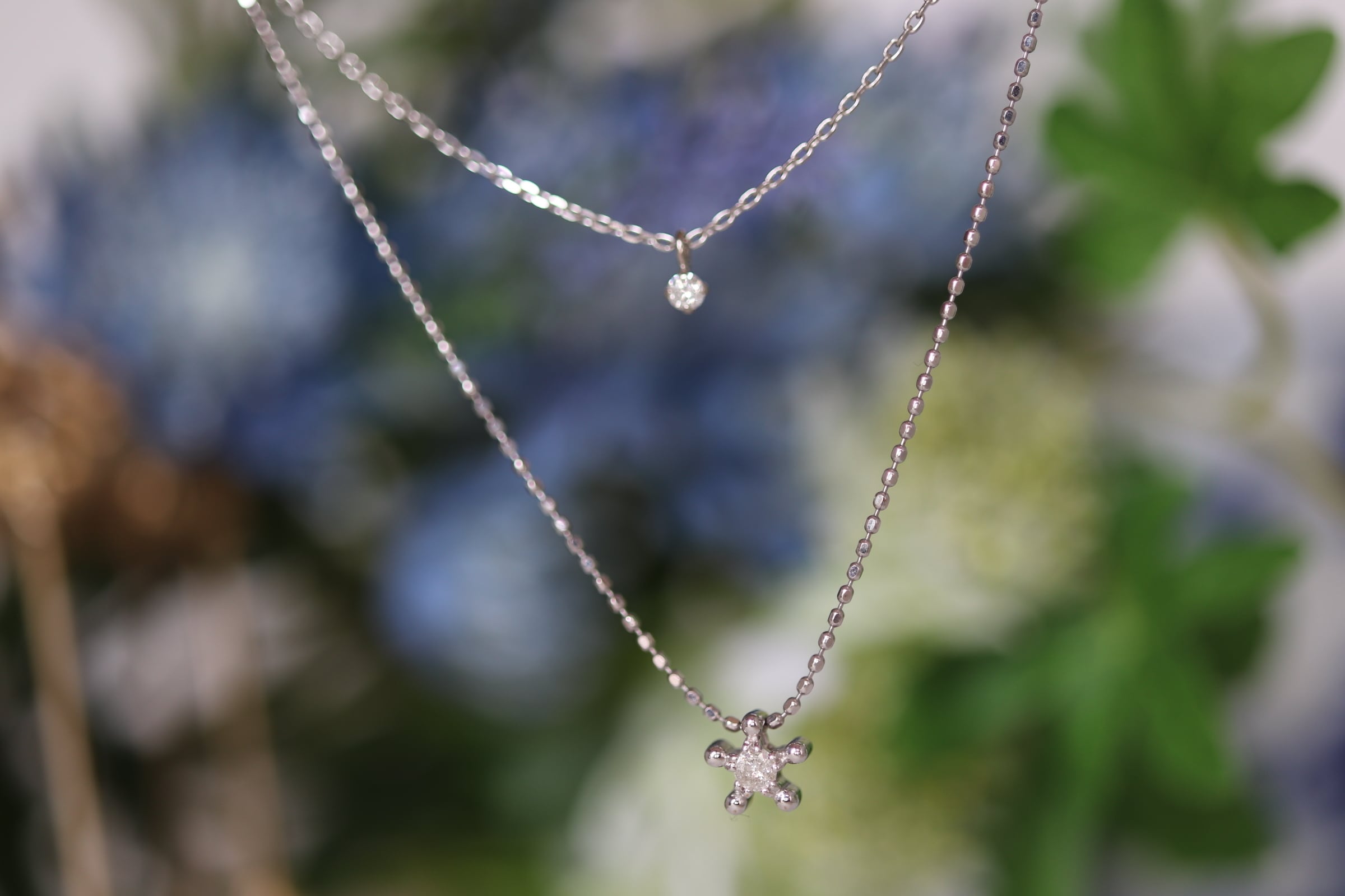 K18WG 2連ダイヤのペンダントs3494